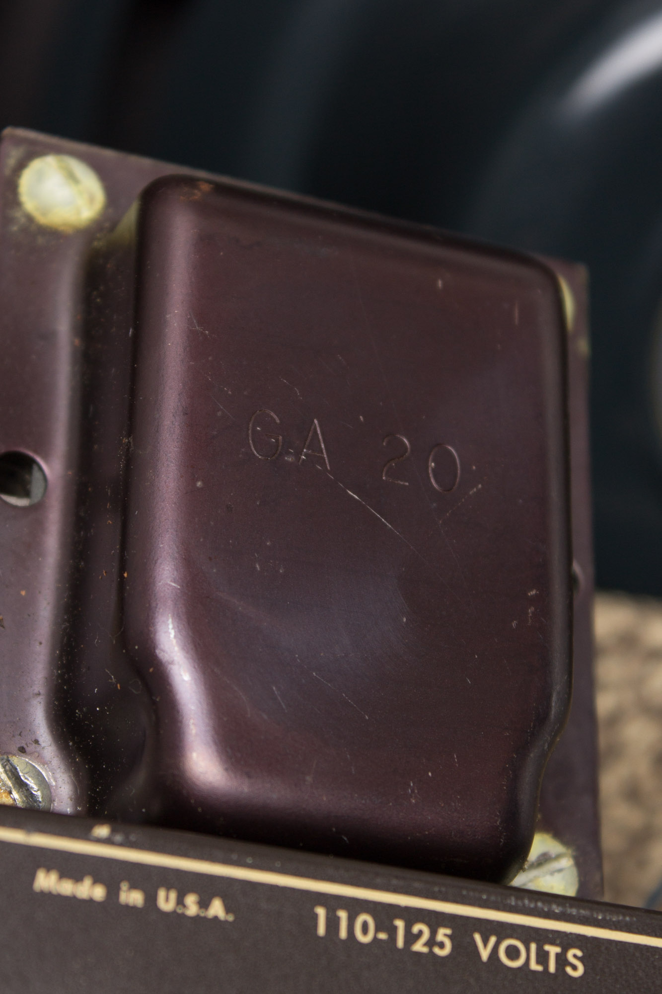 Electrically, the amp is nicely original, save for some routine maintenance. Both power and output transformers are original to the amp and marked GA-20 and Z-3560/220-631 respectively. The original Jensen P12R, marked 220-632 (32nd week of 1956) is in fantastic shape. The Centralab pots date to early '56 (304-605). The amp has received typical maintenance to ensure reliable and safe operation for years to come, including the replacement of all electrolytic capacitors and any coupling capacitors that are too far degraded. All sockets, pots and jacks have been cleaned and the power tubes have been biased to spec. The amp also has been outfitted with a 3-prong grounded power cord. It sports Sylvania 5Y3 rectifier and 6V6GT power tubes, a NOS RCA 6SL7 and a GE 12AY7.