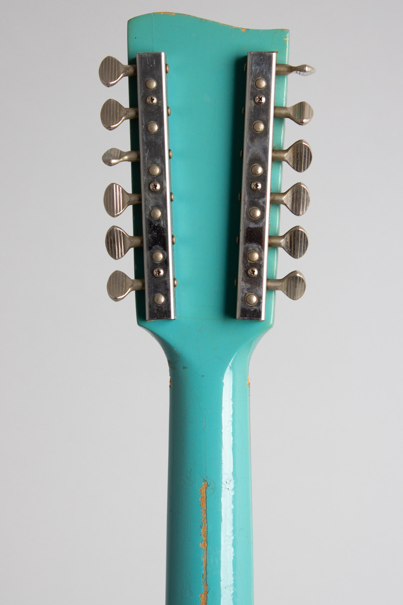 These were bargain-priced instruments, especially compared to the company's new Coral-branded line. This Model 2N-12 was the most expensive of the lot and cost $89.98 new, plus case. This was quite a bargain in a two-pickup electric 12 string, even for Danelectro. "No greater value in popular priced electric guitars" claimed Danelectro, not without cause!