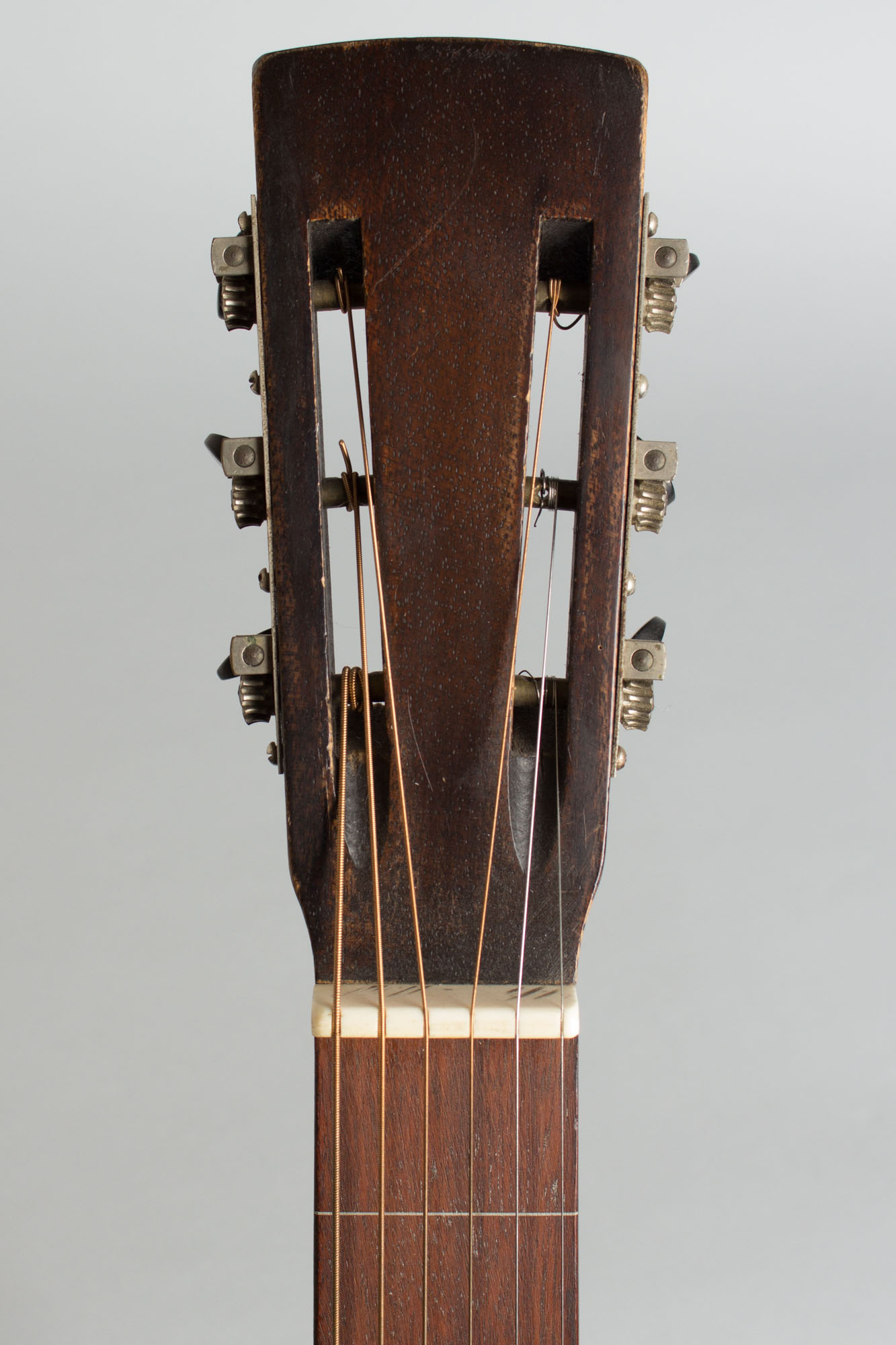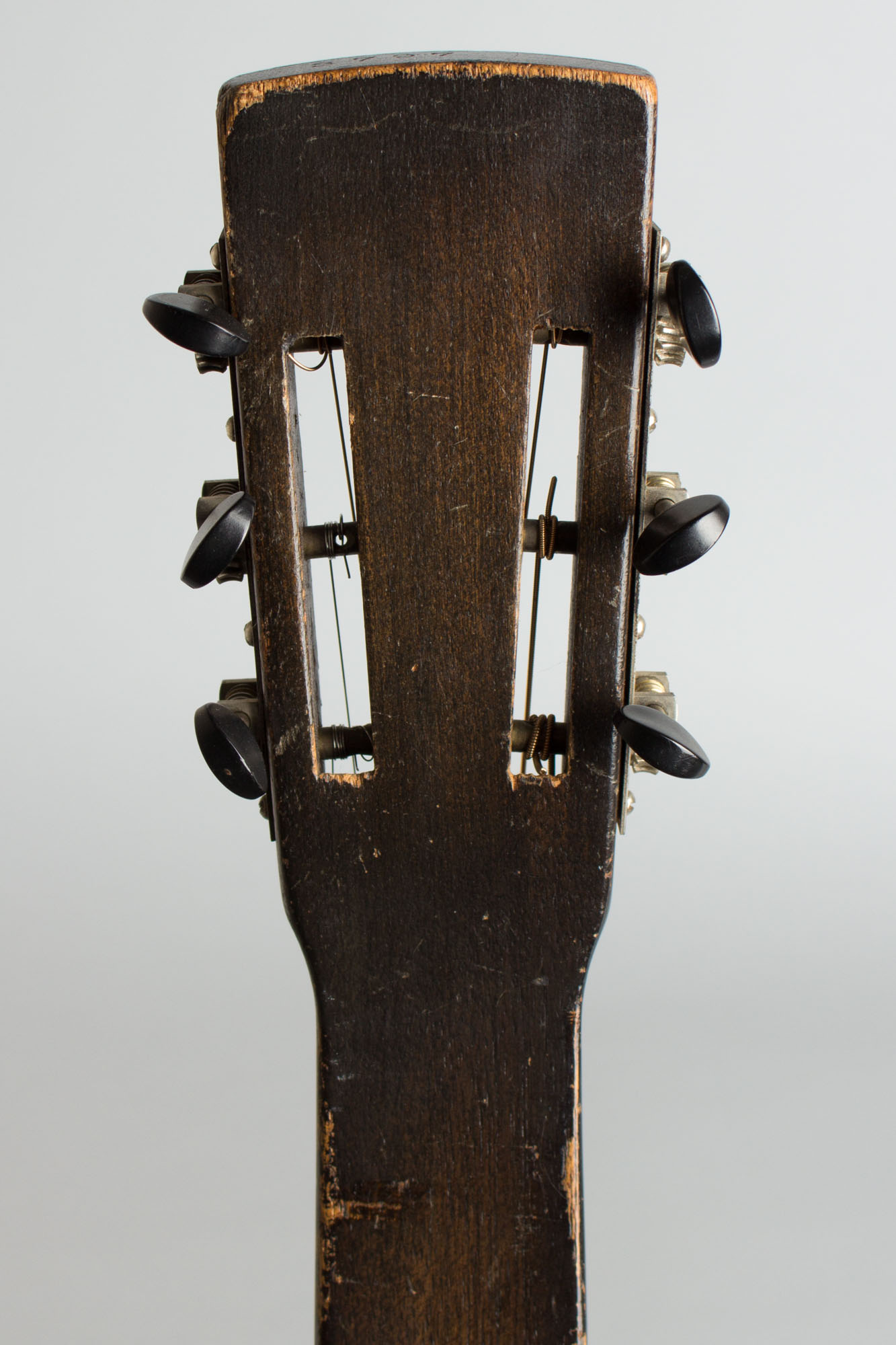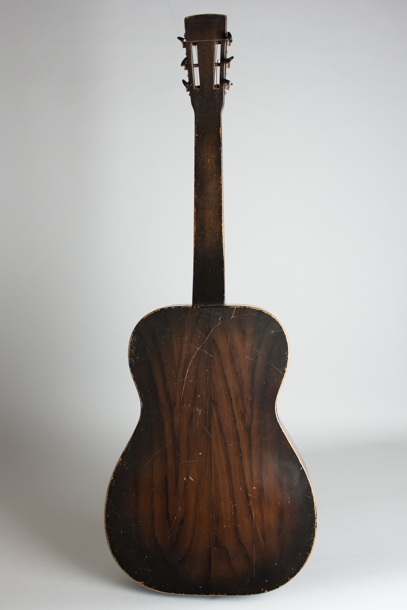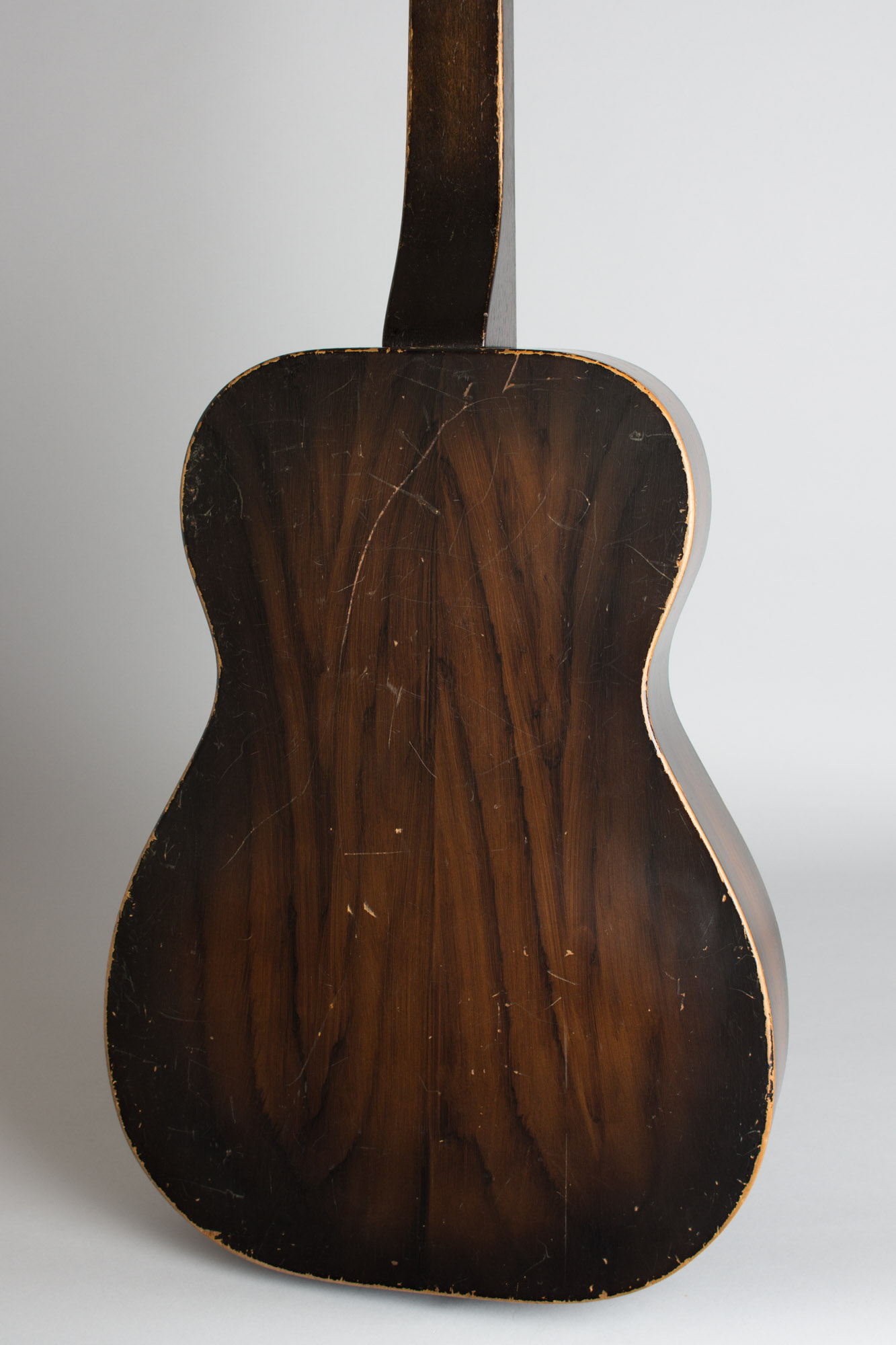Some overall finish wear but no visible damage or repair; a nicely original guitar. No Dobro decal but no evidence that one was ever present; this may have been an unmarked catalog or jobber instrument. Very fine sound; a sweet classic 1930s Dobro. Overall Very Good + Condition.