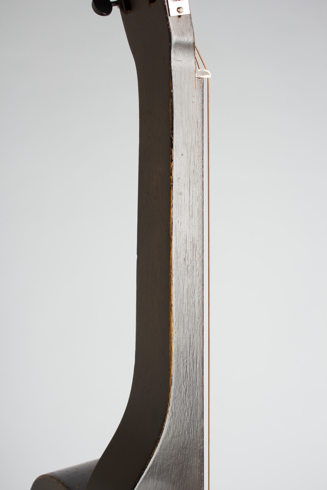 Overall length is 39 in. (99.1 cm.), 14 1/4 in. (36.2 cm.) wide at lower bout, and 3 7/16 in. (8.7 cm.) in depth at side, taken at the end block. Scale length is 24 3/4 in. (629 mm.). Width of nut is 1 7/8 in. (48 mm.).