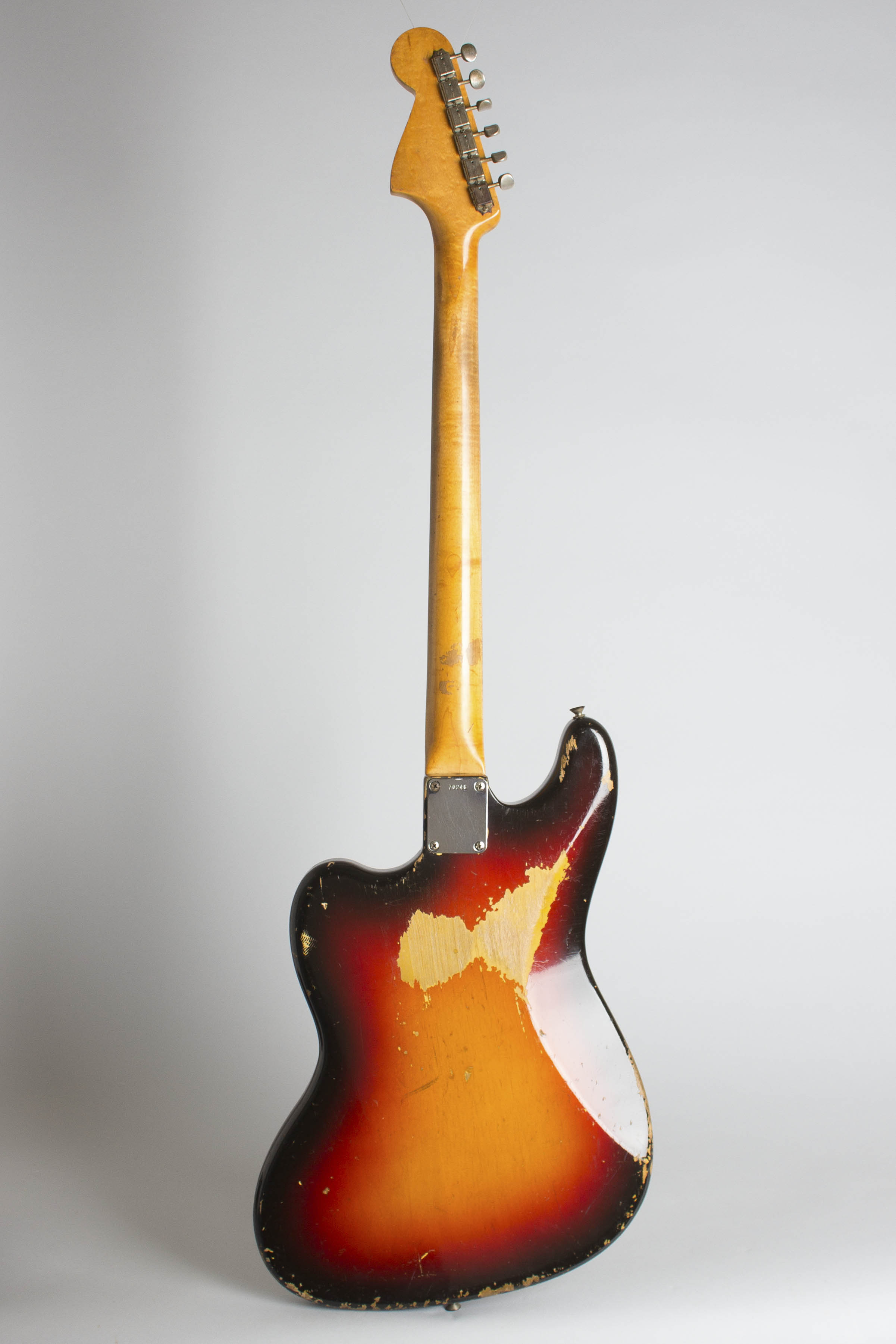 Besides the prototype style decal, this VI has the standard features of the first model. The pickups are specific to the instrument, much like Stratocaster units with chrome surrounds specific to this model. The body features the standard 1961 blended 3-color sunburst, with a clay-dot rosewood fingerboard and tortoise-celluloid pickguard.